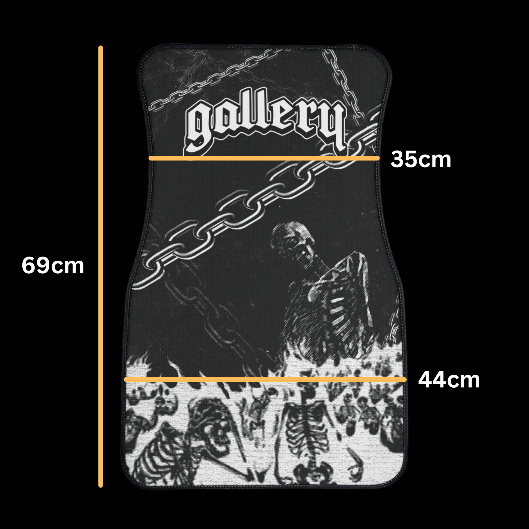Mat Back: heavy-duty rubber - waterproof/non-slip rubber soles. These car mats combine a rug surface on the front with a heavy-duty rubber backing for a clean look and stable fit. The rug top has a Skeleton skull design interior-focused style, while the waterproof, non-slip rubber backing helps keep them in place during driving. Designed as custom car floor mats, these are dark gothic skeleton-themed car mats with a black aesthetic design, made for alternative and underground car interiors. Thet are solid interior accessory and a popular choice among car enthusiasts.