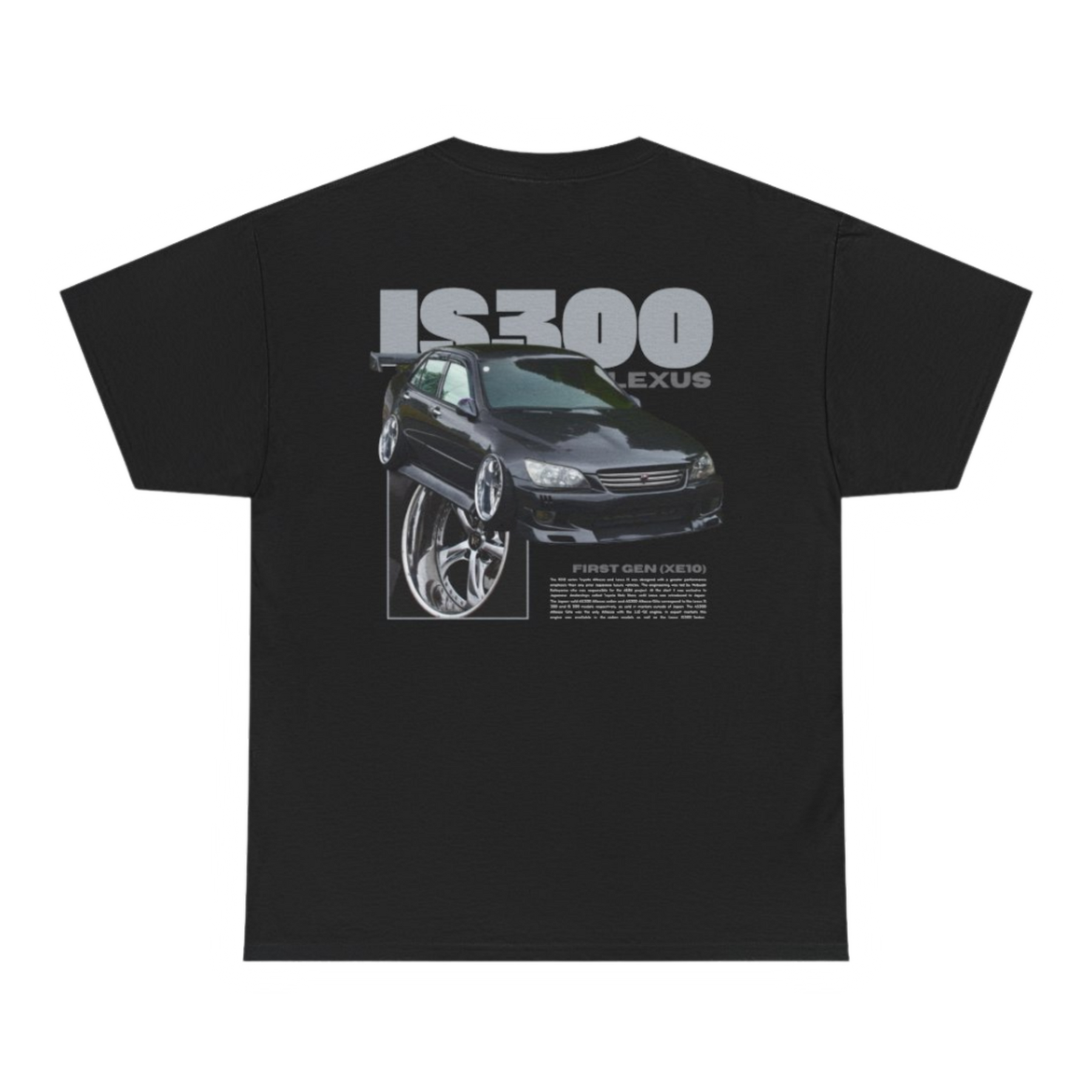 Black T-shirt with Lexus Is300 / Is200 graphic on the back, picture of the rear, closeup of the graphic